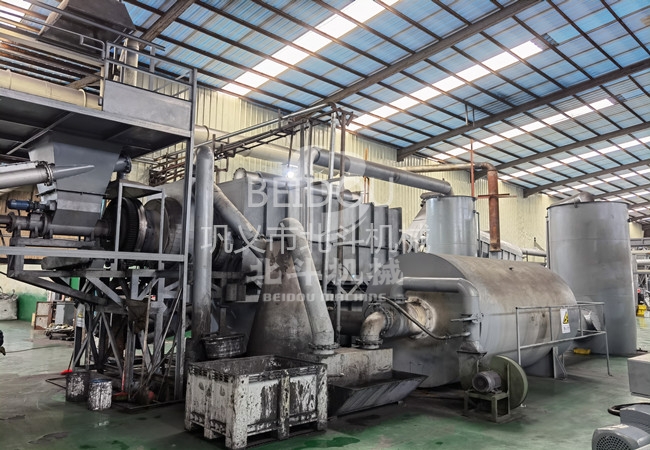隨著油泥處理技術(shù)的不斷提高,鞏義市北斗機(jī)械針對(duì)油泥開(kāi)發(fā)了節(jié)能環(huán)保的油泥炭化爐,為24小時(shí)連續(xù)生產(chǎn)設(shè)備,生產(chǎn)能力強(qiáng),回收利用油水混合物液體和氣體作為燃料二次利用,油泥熱解炭化產(chǎn)生的氣體進(jìn)入出油氣系統(tǒng)處理,油泥炭進(jìn)入冷卻出炭系統(tǒng),高溫燃燒室產(chǎn)生的氣體進(jìn)入排煙系統(tǒng),實(shí)現(xiàn)油泥的連續(xù)化熱解炭化,實(shí)現(xiàn)油泥無(wú)害化、資源化熱解處理,環(huán)保優(yōu)勢(shì)非常明顯。